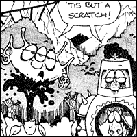 Highlights of this particular edition of Black Leather Times include a DragonCon convention report involving projectile vomiting, a science fiction true or false test with questions about your amourous feelings for unicorns, and a personal account of fighting boffer sword warriors with something called a Molatov Omelet. Your Kindly Uncle William weighs in on the benefits of dressing up in armor, leather, and fur to get otherwise unattainable play and a gentleman with the unlikely moniker of Pyro Chris laments his years spent playing Dungeons & Dragons saying, “I feel deprived of my youth. Where was my blond cheerleader girlfriend, whose parents went away to Europe for the weekends and left me to watch their house, daughter, and ’67 Mustang?” Just go and read the darn thing already.