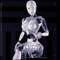 Slashdong reminded me that I hadn’t talked about the Svedka robot babe yet. Los Angeles currently has its fair share of billboards featuring pinups of this fembot hottie. The concept is that, in the future, there is a brief new alcohol prohibition that only Svedka is courageous enough to continue distilling during. Svedka vodka and the Svedka robo-ho SVEDKA-Grl combine with legalized social smoking, re-legalized boozing, queer fashion, porn, paparazzi extermination, and free plastic surgery to take the party to the next level. Apparently Swedish vodka makers have seen the future and the future is West Hollywood. No fatties allowed, but that hot chick bot is quite sexy and, remember, plastic surgery is free in this future paradise. If you are young and effing hot, feel free to lie about your age to gain admission to the Svedka site.