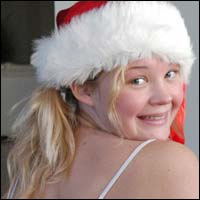 Christine Young is one sexy little lingerie-clad elf for Santa. I’m not sure what he is making in that toy shop now.