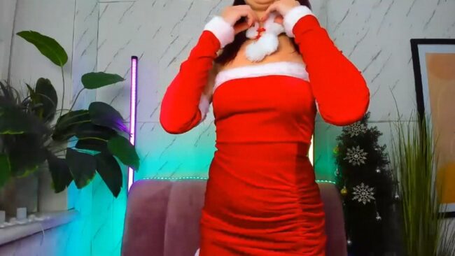 Her graceful movements show us two things. One is her incredible beauty, and the other is that sexy Santa girl outfit she is wearing that comes with lots of sexy surprises.