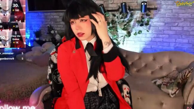 This is a stunning show where Alex_Howell cams while cosplaying as Yumeko Jabami from the aforementioned anime, and she plays in her room with allure and a whole lot of beauty that we can see come together in real time as she touches up her makeup before more attractive reveals happen, making us all winners.
