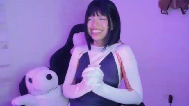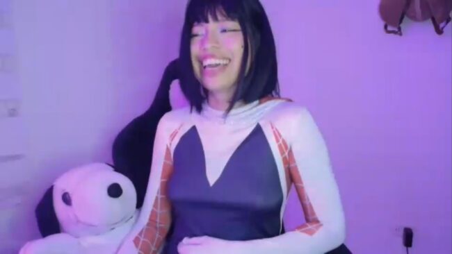 Bright white, deep black, and just a splash of neon pink and cyan—Cherrywitchy‘s Gwen Spider suit isn’t just a uniform, it’s a remix.