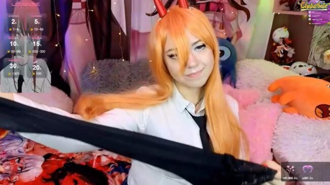 We’re really close to Valentine’s day, and Alicakim is doing a cosplay stream that is a source of happiness and warm fuzzy feelings for me where she wears a white blouse and black tie that make me think of Makima from the Chainsaw man anime.