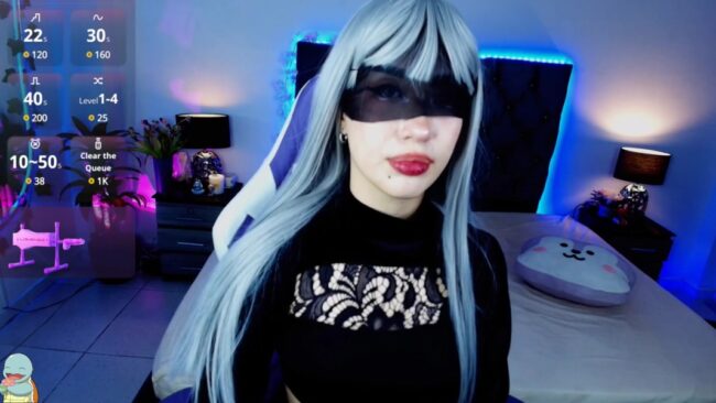 Before she gets into the super spicy stuff, Mkultra__ shows us her cosplay of 2B from the game Nier: Automata, and all the sexy features that she’s included in it.