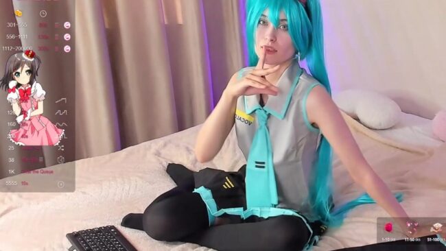 While in the presence of this gorgeous idol, it is natural to feel a rush of excitement and a desire to jump up and down with glee, particularly because the amazing cam girl _Emily__Strike_ is cosplaying as none other than Hatsune Miku, and she looks ravishing in this stream that’s like having a backstage pass to many beautiful treats.