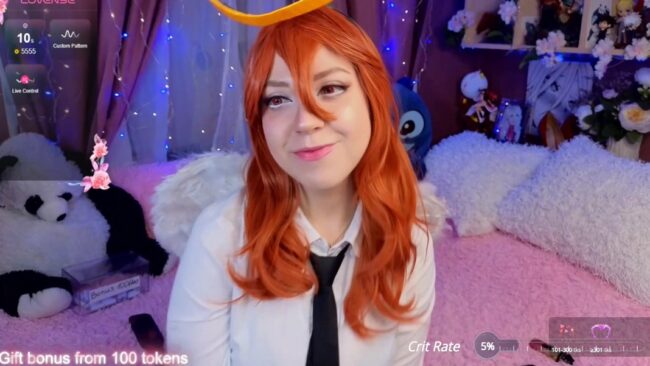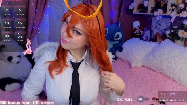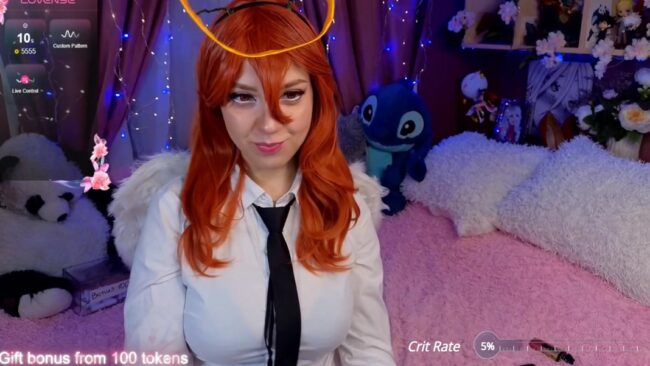 Her cosplay is based on Makima from the anime and manga series Chainsaw Man, but she is adding a halo and angel wings to her outfit to make it more heavenly and adorable, which plays really well with the more daring things she proceeds to show us that focus on close-up revelations of how she slowly unbuttons her outfit to bring about a spectacular unveiling of all the secrets of pure bliss that await us underneath the outfit she wears.