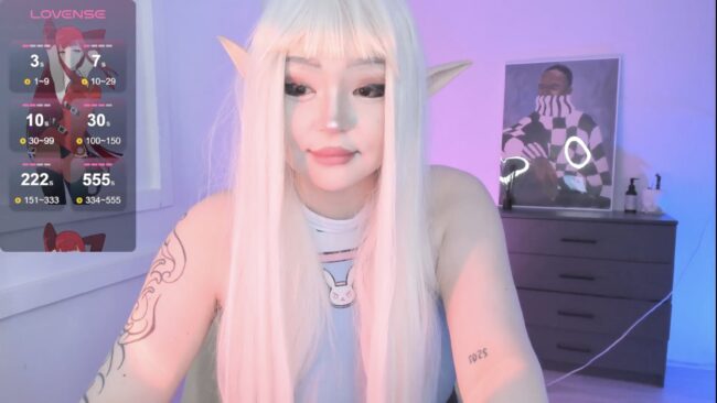 The pointed ears peek through her headset like antennae for drama. Her armor shimmers with enchanted shaders, pink and iridescent like she crafted it in a glitched-out fairy forge. Her war paint’s still flawless, but now it glows with +3 charisma and passive sparkle damage. Her mech? A sleek, rune-inscribed beast powered by mana, Mountain Dew, and zero patience for feeding teammates. The voice lines? Still cocky. Now with added elven poetry. She doesn’t say “Nerf this”—she whispers an ancient incantation that drops a magical AoE and wipes the whole raid party.