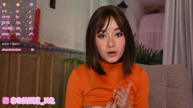 Sunny_Sonnie is rocking a cosplay of one of the most popular characters in classic cartoons. We’re of course talking about Velma Dinkley, the cute intellectual girl from Scooby Doo, and she’s portraying it in a very lively manner that makes this cam girl even more irresistible.