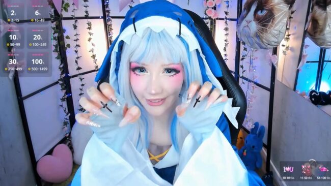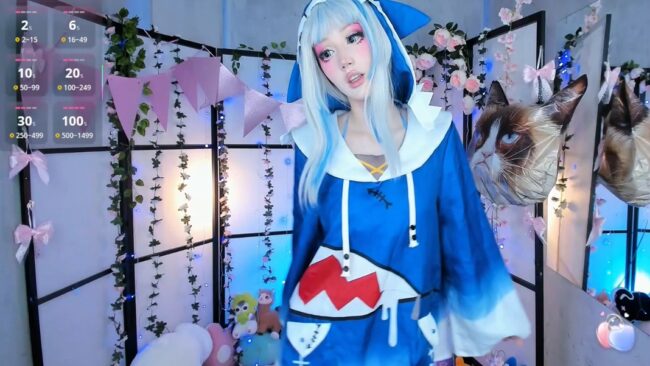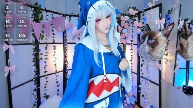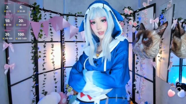 Gawr Gura is the name of the character from hololive that Milkycute is bringing to life through her adorable cosplay, and she dazzles us with her soft and smooth dance moves that every once in a while end up with her bringing her hands up like claws and giving us a heart-melting “rawr” to go with her dancing.
