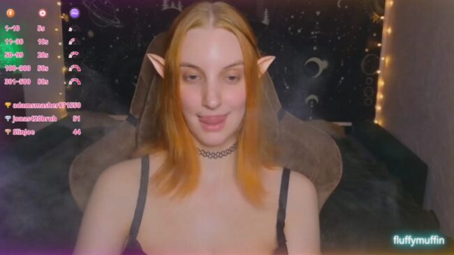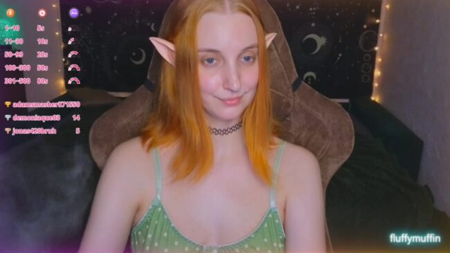 There’s a vibe I love in Fluffy_Muffin3’s room, and it works beautifully with both the elvish aesthetic she’s working with, and with her sexy two piece with green tones that brings images of a forest to the mind.