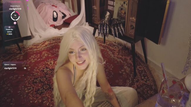 Alaskagrace shows us her dazzling beauty, and I swear by the old gods and the new that her cosplay on this cam show is so awesome that it makes me feel like I am really in the presence of Daenerys Targaryen, and I am almost expecting to see dragons coming to join her later on this stream.