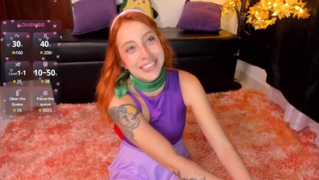 I’m amazed at how quickly and skillfully Violetaarey can perform a handstand during this cool cam show where she is also showing us her beauty in that Daphne cosplay that she wears while slowly uncovering a lot of mysteries.