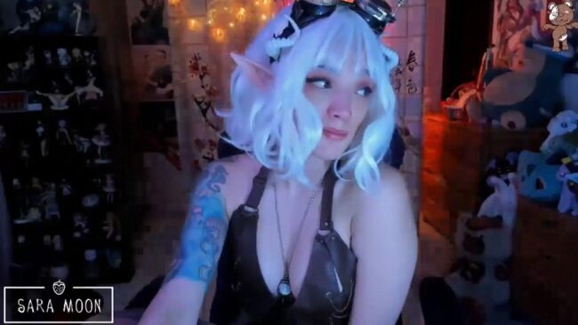 Camming with short white hair in a wonderful style and an adorable gaze that has an irresistible power of allure, Sara_Skys cosplays a cute elf with a sexy outfit that kind of reminds me of the aesthetic from the Monster Hunter games.