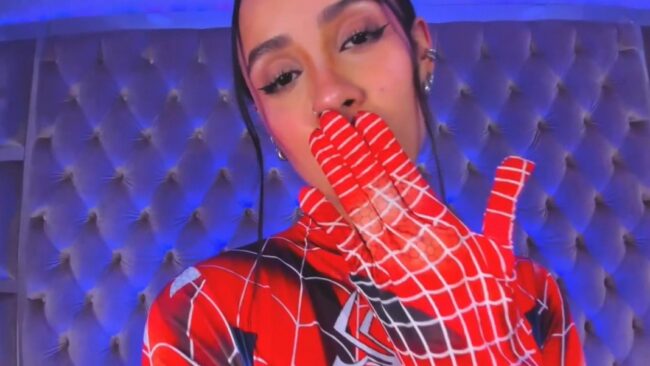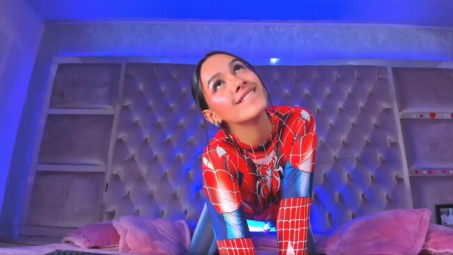 The bedroom setting that Haari02 cams in allows her to show us plenty of alluring things, since she can not only show us her Spider-man cosplay perfectly and from various distances, but the bed also gives her the perfect opportunity to dazzle us with her spidey-like poses, as well as initiate lots of spicy activities.