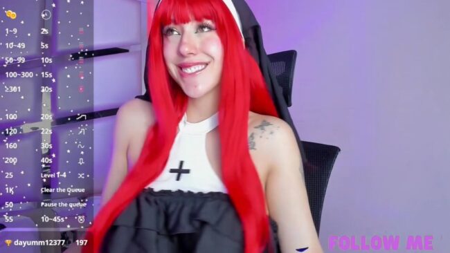 The bright red hair is a fantastic touch for her ensemble, which today transforms the awesome Cute_Stoone into a nun in the sexiest way possible while at the same time letting her continue to enamor with cuteness.