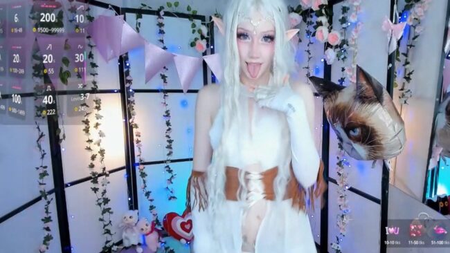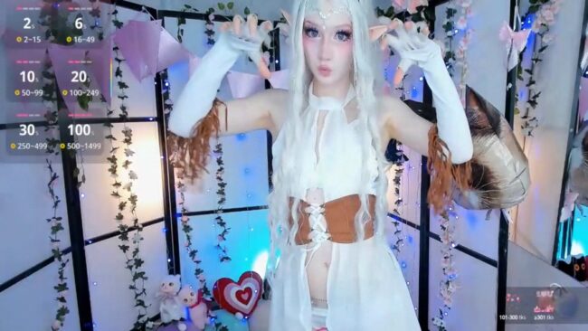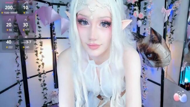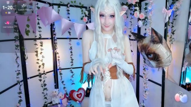 Milkycute’s show is one of those that makes me smile in a second. She looks so good in her white outfit with brown details that hint at a forest fantasy, her white hair and that circlet that gives her a cute and angelic look that she totally rocks.