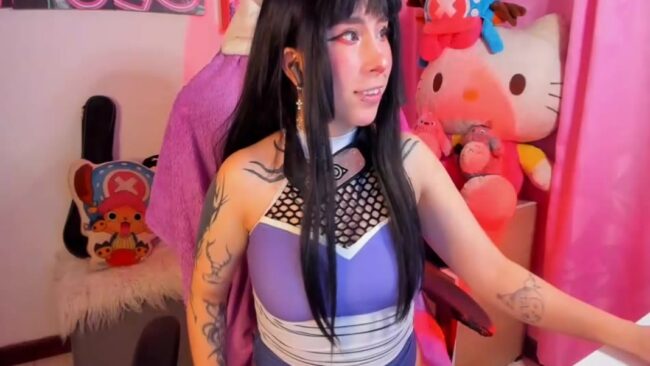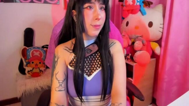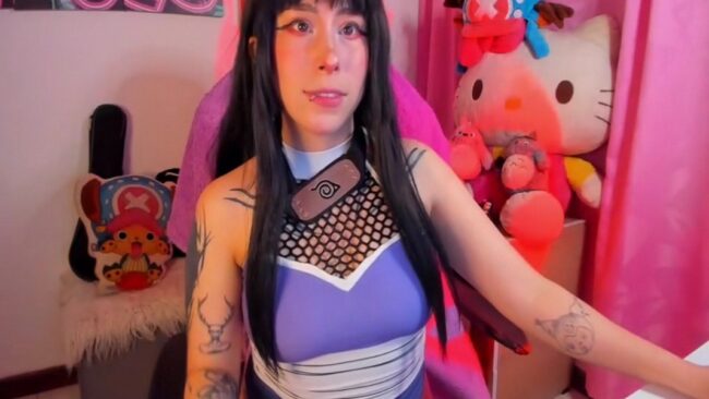 Waifu_Aika’s long hair is gorgeous too, and I have a special appreciation about how the whole look comes together to give us a nice cosplay of cute kunoichi Hinata from the Naruto series, and it is a style that increases attraction when this cam girl shows it in full and starts the more revealing treats of her live stream.