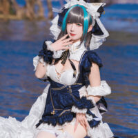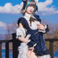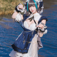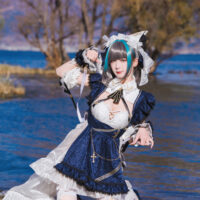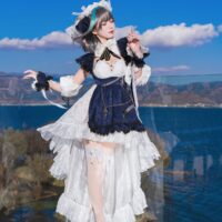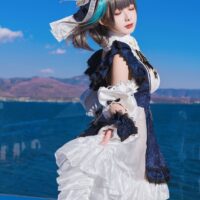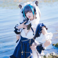 Physically, Cheshire’s got the looks that could stop torpedoes in their tracks—dark grey hair with blue highlights, piercing blue eyes, and an outfit that’ll make you wonder if maid cafes are missing out on battle-ready attendants. Despite her charming demeanor, she’s not just fluff; her focus may be on anti-aircraft warfare, but any surface ship would be wise not to cross her path. Even as she flirts with the Commander, referring to them as “Darling” at every turn, her combat skills are nothing short of legendary.