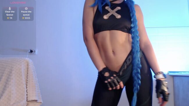 Evahailey_‘s Jinx is chaos with pigtails, painting the battlefield in neon explosions and bad decisions. Blue braids whipping like warning flags, mismatched gear strapped on like she robbed three different armories, and that manic grin that says something’s about to go very, very wrong.