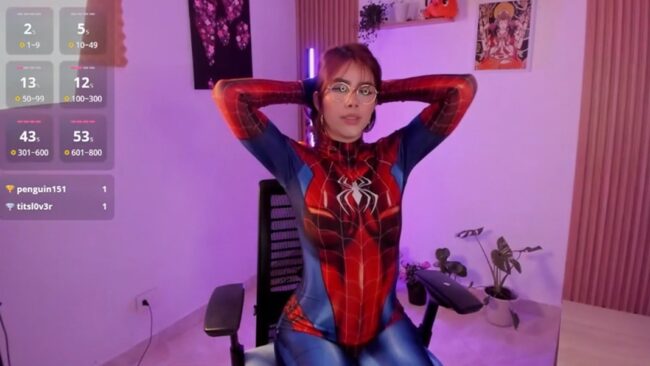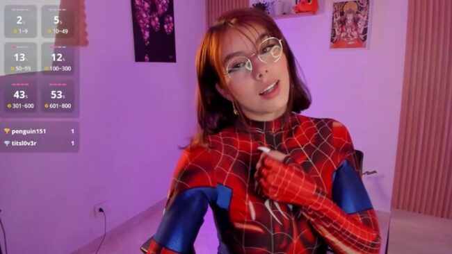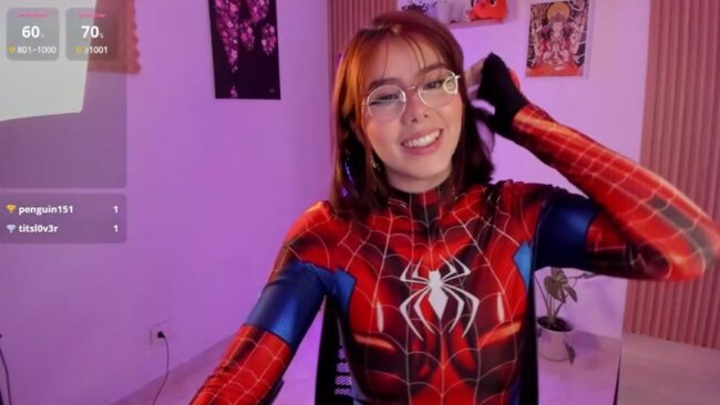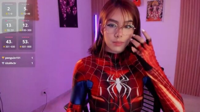 I love the way that Lilyrouse_ plays with her hair, which is short and gorgeous, and how she poses to show us her skin-tight suit better, which offers a really nice view with the way it transforms her into a sexy and very cute Spider-woman who brings a dazzling touch with her enamoring smile, as well as lots of smooth tingles while she draws us in to her web of adorableness.