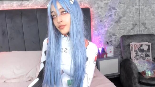 _Valuu is all dressed up for battle in a white Plug Suit on this cam show where she cosplays as Rei Ayanami from Evangelion while she demonstrates an adorable level of sexiness as well as some spicy fun since, spoiler alert, that Plug Suit doesn’t always stay zipped up all the way.