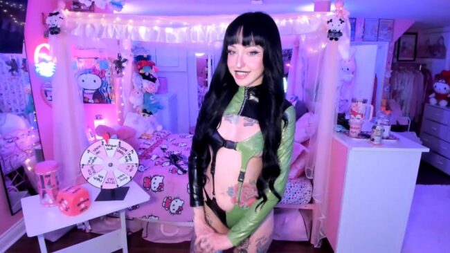 The outfit she’s chosen is green, black and all kinds of awesome thanks to all the skimpiness. It transforms her into Shego from Kim Possible, and while we admire her beauty and hang out with lovesick on this amazing cam show, she also gives us some more daring treats that necessitate the removal of that alluring outfit so we can enjoy them to the full, which is also why this stream is so dear to me.