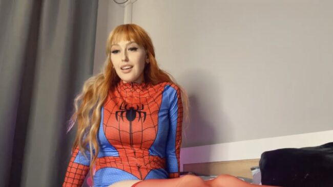 Web patterns lace across her outfit like they were sketched straight from a comic panel, making her superhero poses look like full-page spreads ready for a collector’s issue. She crouches low, stretches high, and strikes every pose like the con floor is her rooftop. Her spider-sense might not be tingling, but her sass certainly is, flashing through every dramatic stance and side-eye aimed at imaginary villains—or maybe just paparazzi.