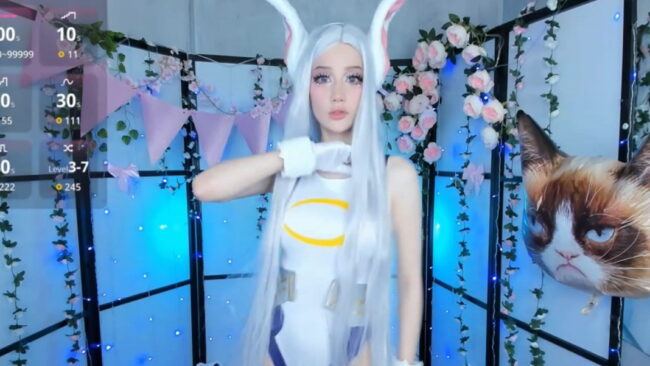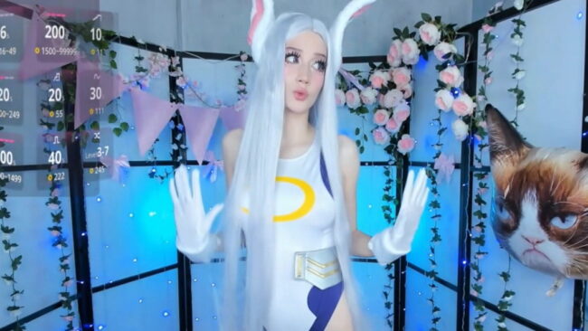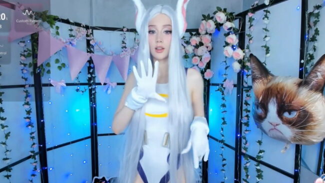 I love the playfulness of her outfit and the way she presents it. Her lively attitude has a special magic about it that makes all her stances super alluring, and that in turn makes this live stream a fabulous treat to get the weekend fun started with some awesome My Hero Academia goodness and this sexy portrayal of Rumi Usagiyama, also known as Rabbit Hero: Mirko that Milkycute is dazzling us with.