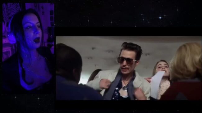 I love how MoonConjured sets the mood for this delightful show where she hosts a movie night. She really is great at creating a cozy atmosphere, and on this stream she’s dimmed the lights and let one particular set shine over her, decorating her lovely face with cute stars.