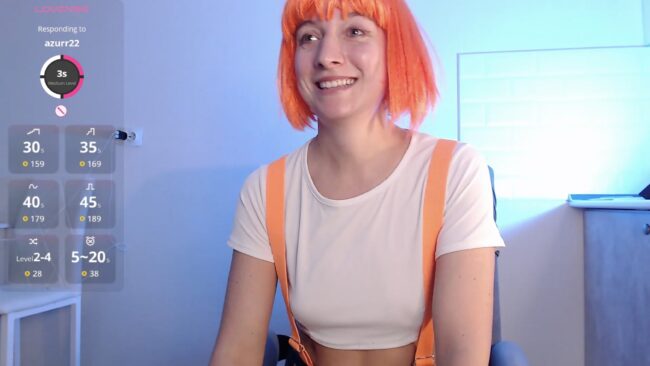 The blazing orange wig, the strappy sci-fi chaos, the vibe of a character who can mispronounce multipass while still saving the universe. Evahailey_ serves full cosmic destiny with a side of interstellar fashion emergency!