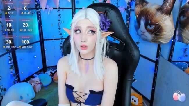 While she models that outfit, Milkycute also lets us share in the cuteness of the rest of her cosplay, which today transforms her into a lovely elf girl with a beautiful flower on her hair that adds adorableness to the style she wears, which makes her look like a gorgeous elf princess who’s inviting us for a special playtime in her room.
