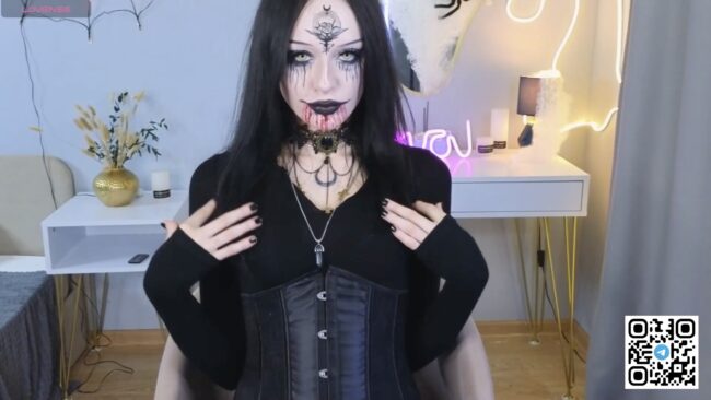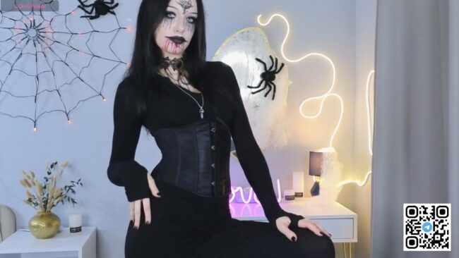 Every curve is outlined in pure villain energy in that tightknit dress with the corset cinched tighter than a victim’s last breath. The neckline dips low, but the stare dips lower with that kind of gaze that could make even garlic sweat. I know she’s got some trophies from a few unfortunate guests who underestimated her hospitality.