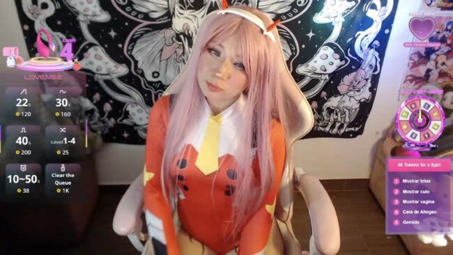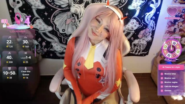 Sexycarriie has got that darling energy radiating off her in pink waves, Zero Two in full sync, equal parts menace and main character.