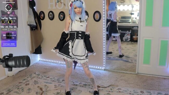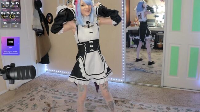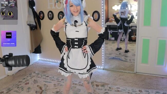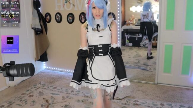 Archancel is dressed in a maid ensemble with a super short dress/apron that adds a daring touch to her lovely cosplay of Rem from the anime Re:Zero, which she portrays in a lively way on this stream that’s full of dancing, sexy sights, and a whole lot of fun that gives a boost that invigorates and makes this night a more magical one.