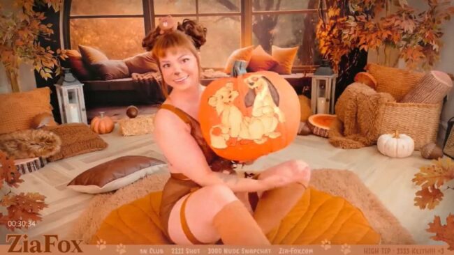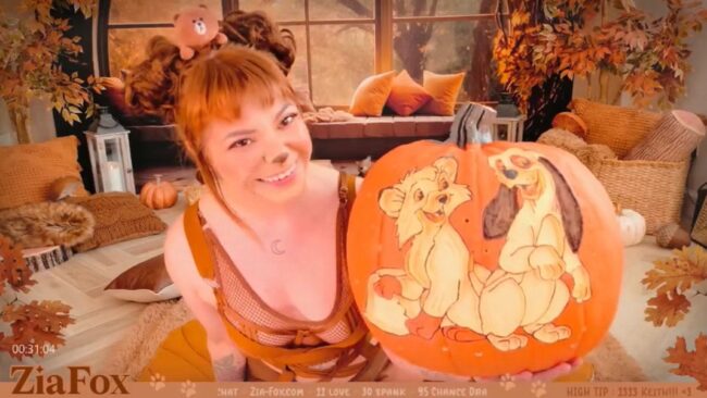 ZiaFox shows us an amazing fun time with the fantastic aura she creates, and she shares one of her carved pumpkins with us, which is just another example of the cute details we can find on her stream.