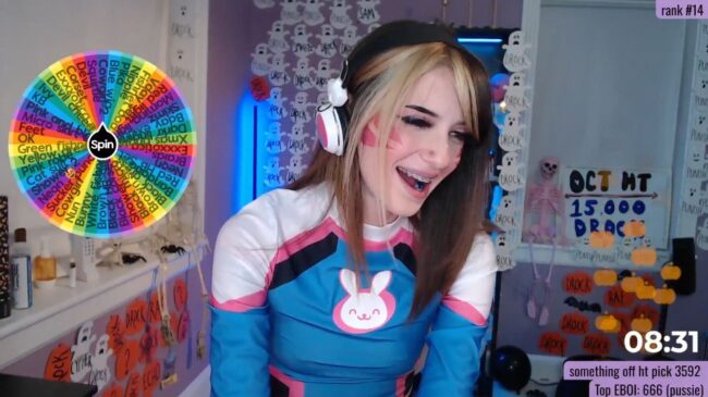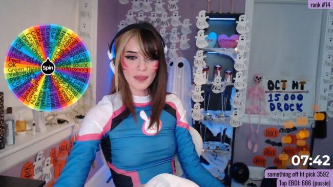 I am not sure why BabeAriel is DrocksAriel tonight. Is this a reference to the dragon from the Unwanteds quest series or did someone just tip for the change? Well, I expect that once I’ve been logged in for a bit, I will figure it out. She looks so cute with her braces and beautiful smile and D.Va cosplay. I always feel like D.Va cosplays are sort of meta. Like the character is a gaming streamer and then pro streamers cosplay the pro streamer character. That is just me though. It is free tonight to set up your profile to talk Overwatch with BabeAriel