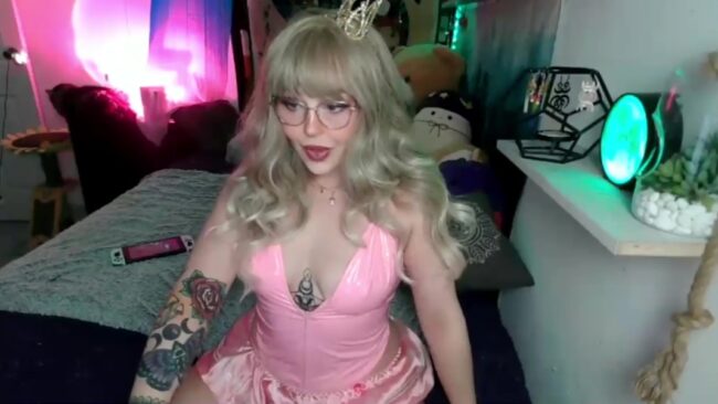 EvieEuphoric is cosplaying as Princess Peach from the Mario Bros. games, and she is showing us a great time with attractive poses that at times reveal some sweet upskirt treats, and she also indulges in some bong hits to make this hangout even more mellow while she gives us this sweet royal treatment.