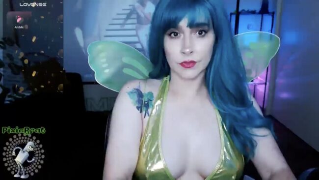 PixieBrat flits in like someone bottled caffeine and glitter and called it a personality. The dress is a perfect shade of mischief green, short, sparkly, and clearly not built for sitting still. The wings shimmer behind her, catching light with every move—part fairy, part disco ball, all attitude and a whole lot of pixie dust.