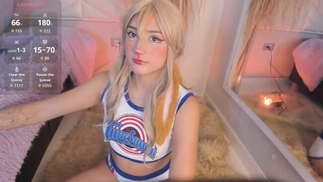 The Tune Squad jersey hugs just right, the shorts bounce with every step, and the sneakers squeak like they’re trying to keep up with her ego. One spin of the ball and it’s clear that this isn’t a warm-up, it’s a performance. She’s got that smirk that says she’s about to cross someone up and make it look easy. Even Bugs is probably sweating, and not from the cardio.