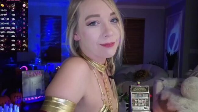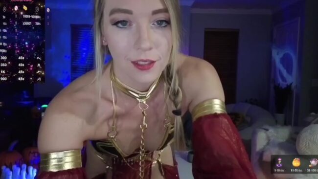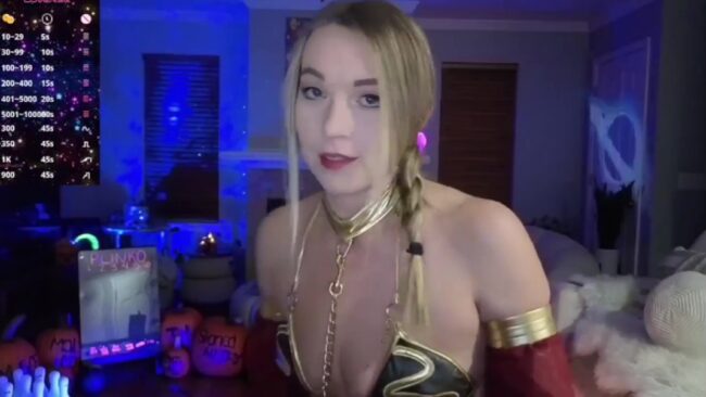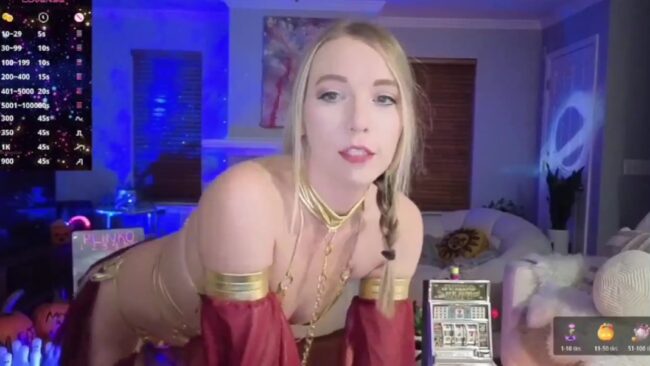I’m enjoying the lovely energy in NaturallyReal’s room tonight, as well as all the sexiness that comes with this gorgeous blonde cosplaying as Slave Leia for this amazing Halloween stream.