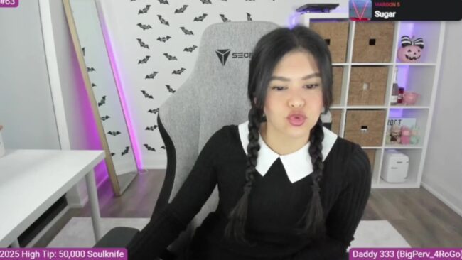 This last element works very well in tandem with her costume, as RorrieGomez is now camming while dressed up as Wednesday Addams, only in lieu the gloominess that the character is almost always portraying, this gorgeous cam girl is instead showing us a more cheerful side of the character that makes her even more endearing, especially when the spicier details start coming up.