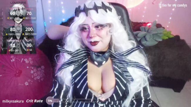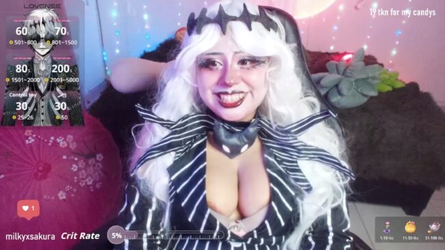 Skully J. Graves drifts in like a Tim Burton fever dream stitched together with sass and coffin couture. A vision in monochrome mischief, Milkysakura looks like Jack Skellington called in sick and sent his far more fabulous cousin to run Halloween Town.