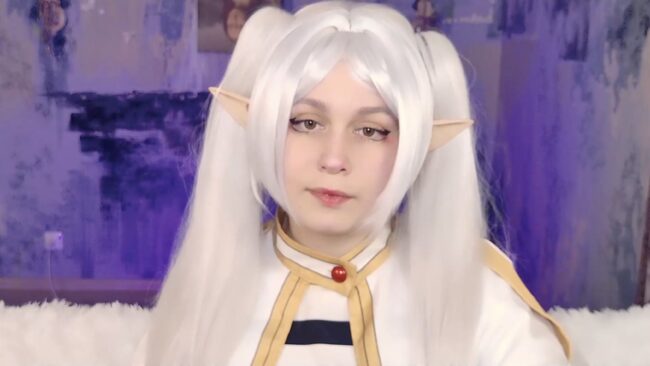 Those long elf ears peek out, quietly judging every spellcaster who mispronounces Zoltraak or can’t hit a moving target to save their life. The outfit carries that classic Frieren grace in the tidy lines, soft colors, and the proud little red gem that glows like it’s tired of doing all the emotional work in the party. Her expression stays locked at the exact level of neutrality that says this is the face of someone who has lived long enough to consider a 200-year friendship recent.