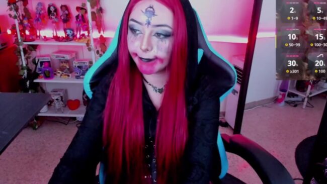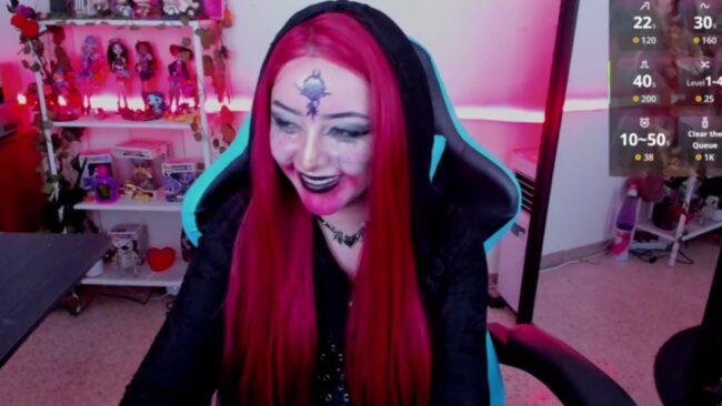 This is why I like this cosplay by Makii_33 so much, because she is all dressed up as Daniela Dimitrescu, and she looks great with the red paint that simulates dry blood around her mouth, the runny mascara on her cheeks and the flower symbol on her forehead that represents the crest of House Dimitrescu, which completes a spooky and beautiful style that makes me thank Mother Miranda for my luck as I get to enjoy this time in the company of Makii_33 and her beautiful Resident Evil-inspired cosplay.