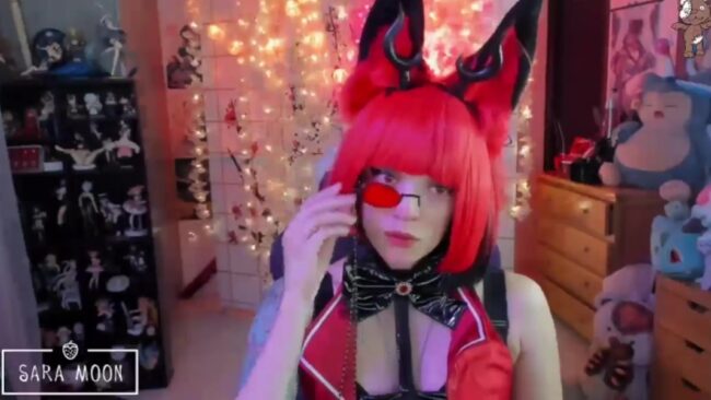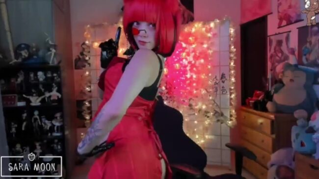 The bold tones of red all over Sara_Skys’ cosplay have a magnetic effect on me. That marvelous tone is superbly eye catching, and I think it adds an even devilish appeal to her style, which she presents beautifully. They are some of my favorite details of this cam show.