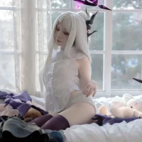 This beautiful cosplayer Etsuko brings Hina’s icy presence to life with almost supernatural accuracy. The flowing silver hair, the dark uniform, the serene but intimidating expression is the exact vibe of a character who’d confiscate your phone, delete your gacha pulls, and somehow still make you thank her for the discipline. The floating halo accessory seals the deal, reminding us that in the world of Blue Archive, students don’t just study math, they casually wield celestial firepower.