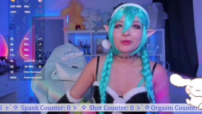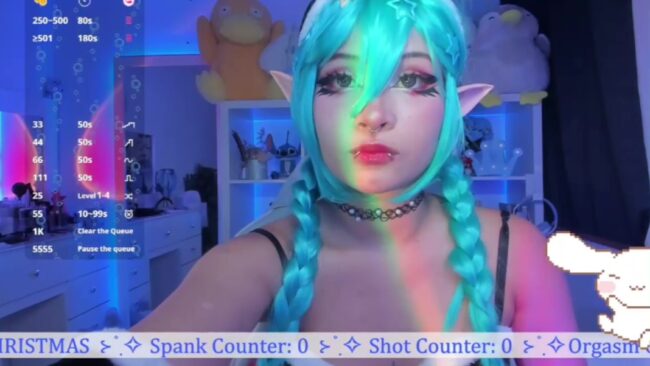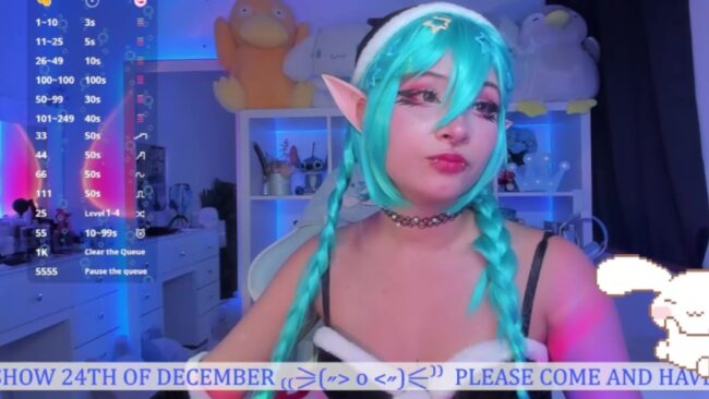 _Heavenly_Blue_ is dressed as a lovely elf, and her costume has some goth touches that go very well with the elven detail she adds to it. I especially like the contrast between the dark outfit and her blue hair because I think it looks a bit anime-like, which I also believe enhances the wonderful feeling of the fast-approaching Christmas.