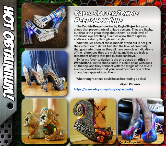 The Zombie Peepshow line by Kayla Stojek brings you shoes that present lots of unique designs. They are flashy, but that is the great thing about them, as their level of detail and eye-catching qualities allow them express endless creativity through each style.