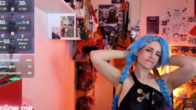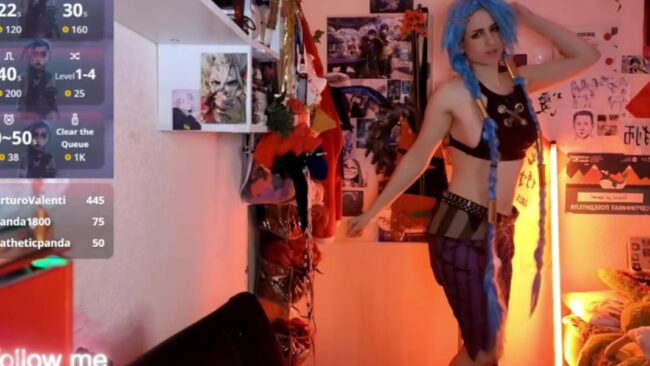 Alex_Howell shares with us a vibrant and lovely time that helps shake off the Monday blues, and I like that she is wearing a sexy cosplay during this nice event. Her outfit transforms her into Jinx from League of Legends, and while she models it, she also dances to some anime music, which is a really fun treat.