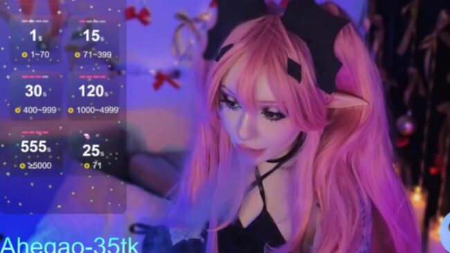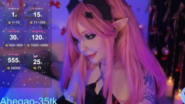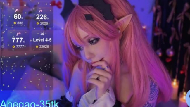 This cam show draws me in with Lina_Diva’s gentle spell. It’s her vampiric charm what I find irresistible on this stream, and the cute pink of her hair that blends together in fantasy with her pointy ears and those cute decorations on her hair that are like the wings of bats.